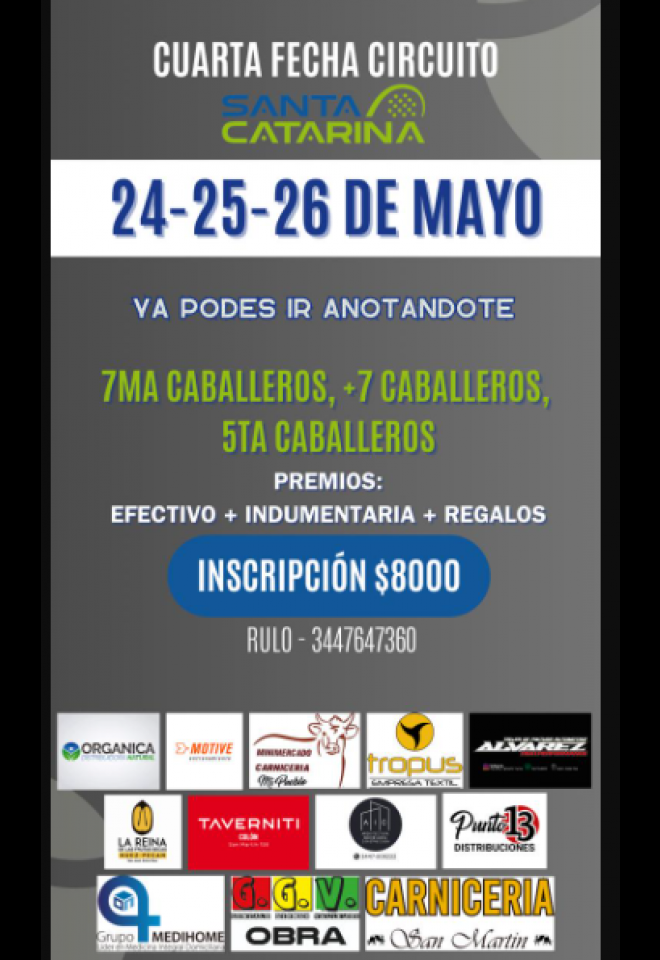 »» Evento: Circuito Santa Catarina Fecha 4 - C7 / C5 / C_S07 »» Localidad: Colon »» Fechas: 24/05/2024 al 26/05/2024